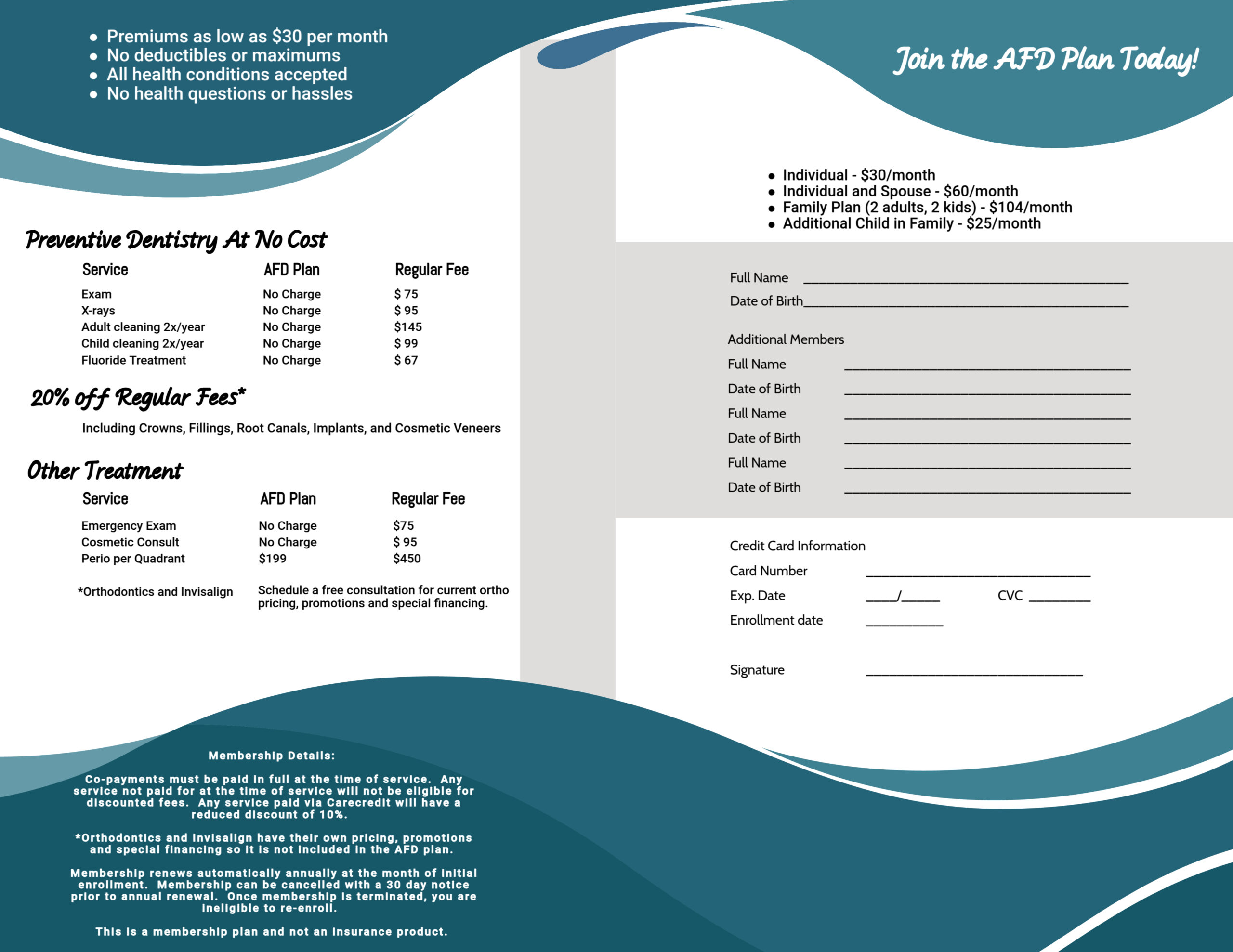 Offer includes your first hygiene visit and a complimentary home-care kit with instructions. Offer does not include periodontal (gum) therapy.